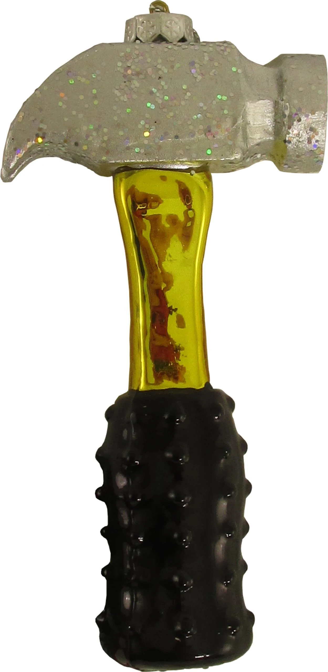 - Lieferumfang: Hammer mit gelbem Griff 10cm, Glasornament, mundgeblasen und handekoriert