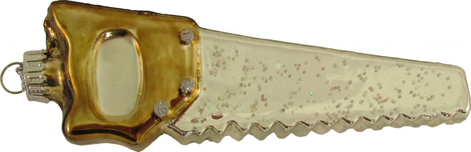 - Lieferumfang: Handsäge 9cm, Glasornament, mundgeblasen und handekoriert