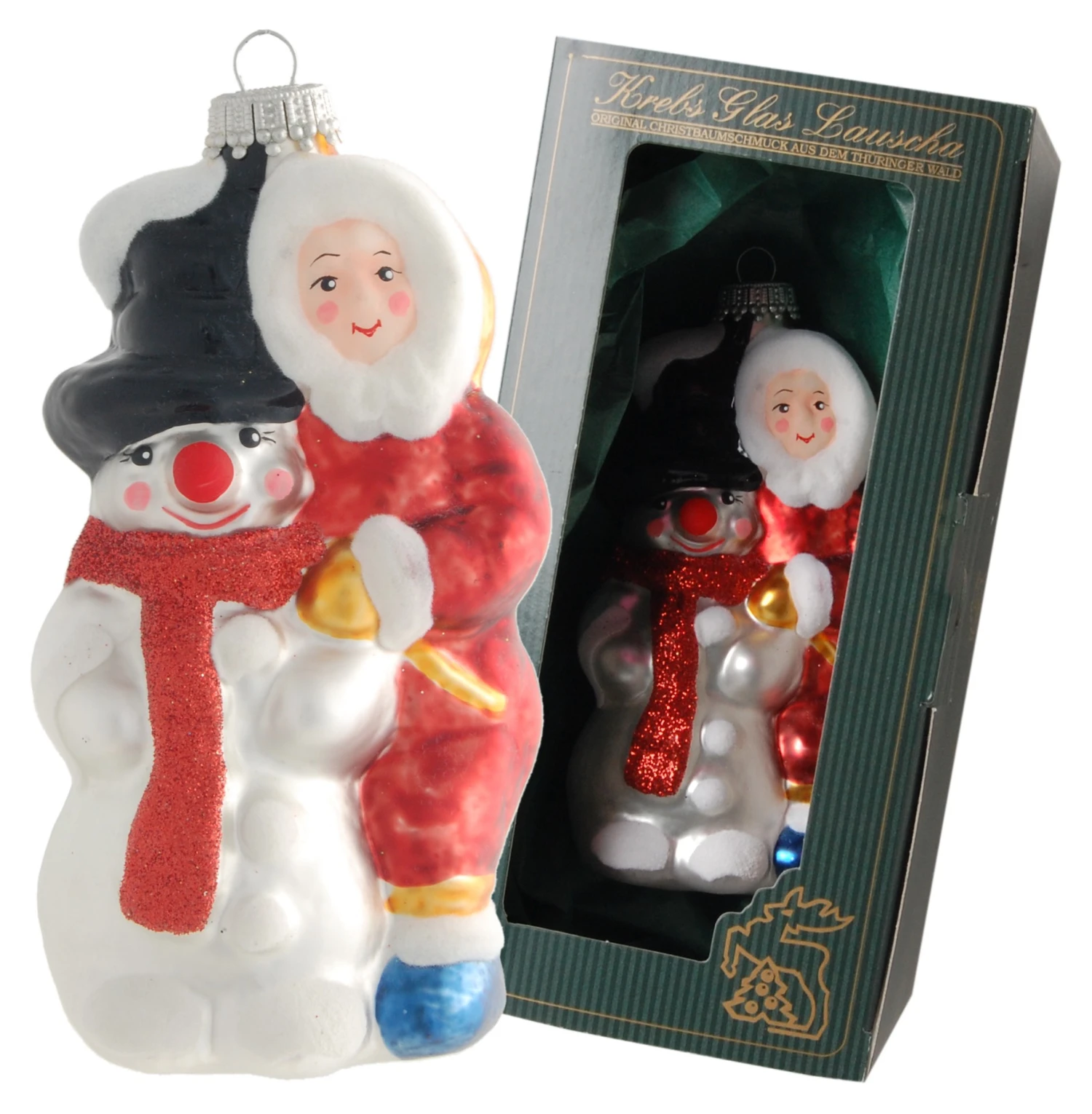 - Lieferumfang: Weiß/Rot 12cm Kind mit Schneemann, Glasornament, mundgeblasen, handbemalt