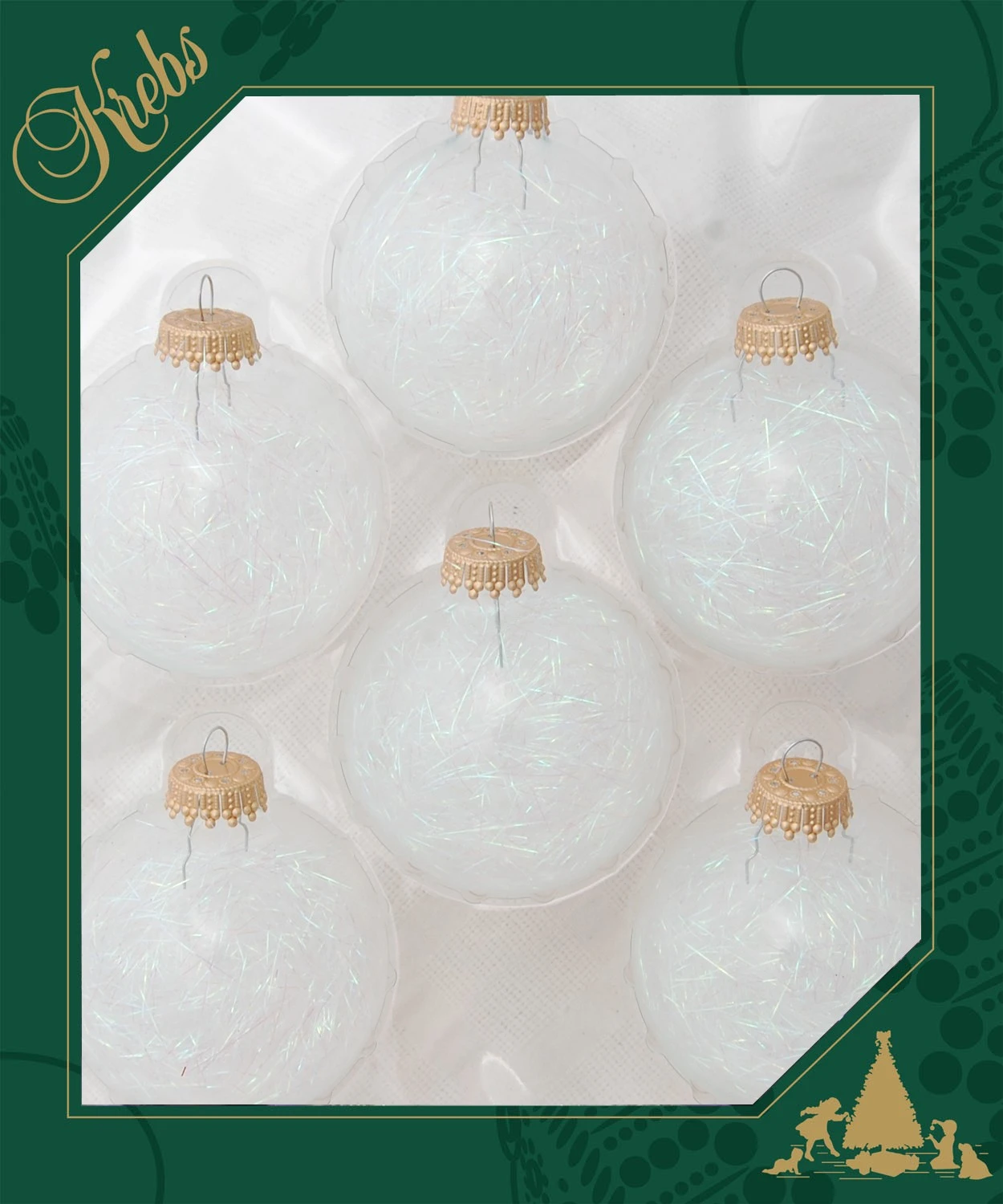 - Lieferumfang: Kristallklare 7cm Glaskugel mit Tinsel weiß innengefüllt (6)