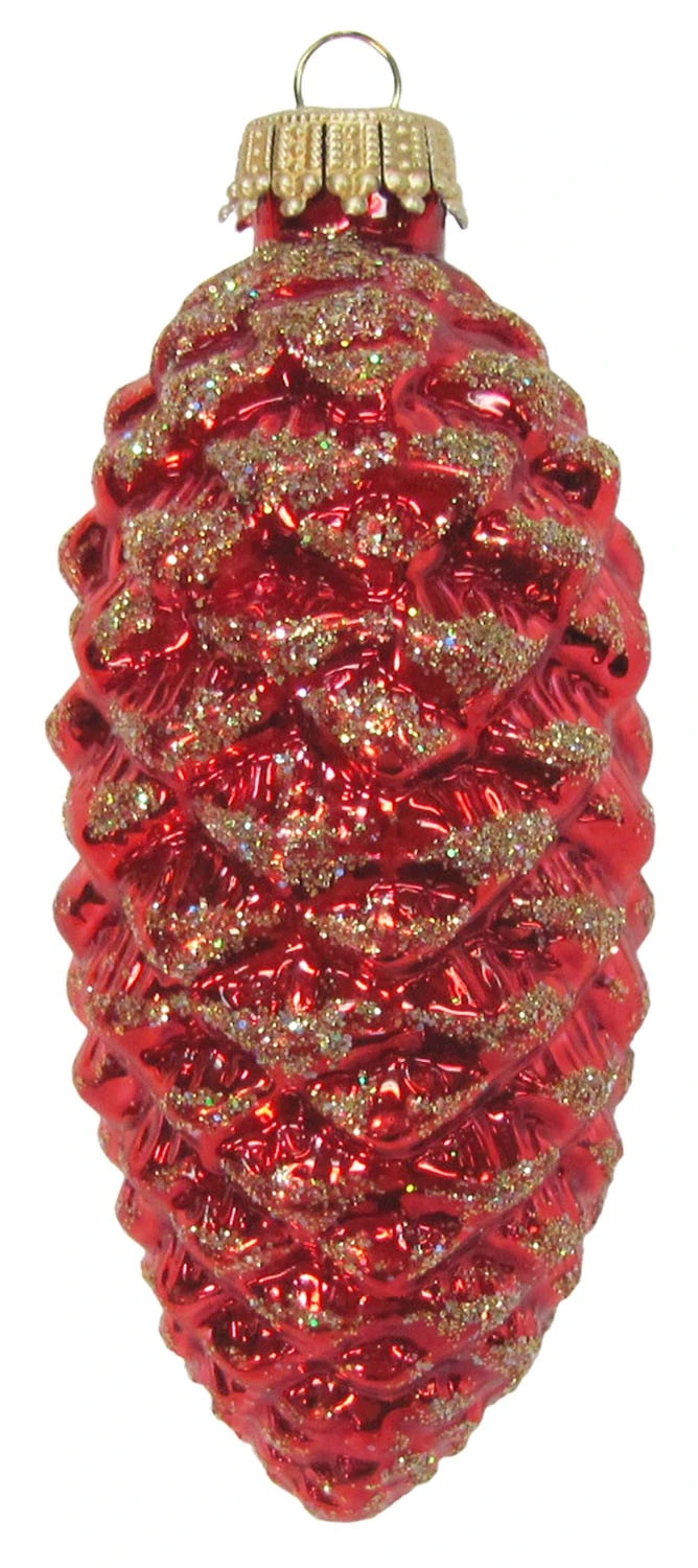 - Lieferumfang: Rot 10cm Tannenzapfen aus Glas, mundgeblasen, handdekoriert (1)