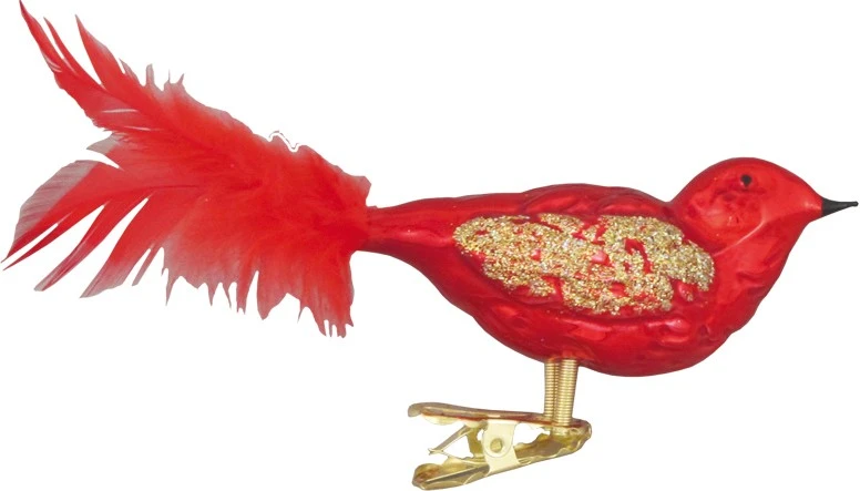 - Lieferumfang: Rot glanz 11cm Glasvogel auf Clip mundgeblasen, handdekoriert mit rotem 6cm Federschwanz