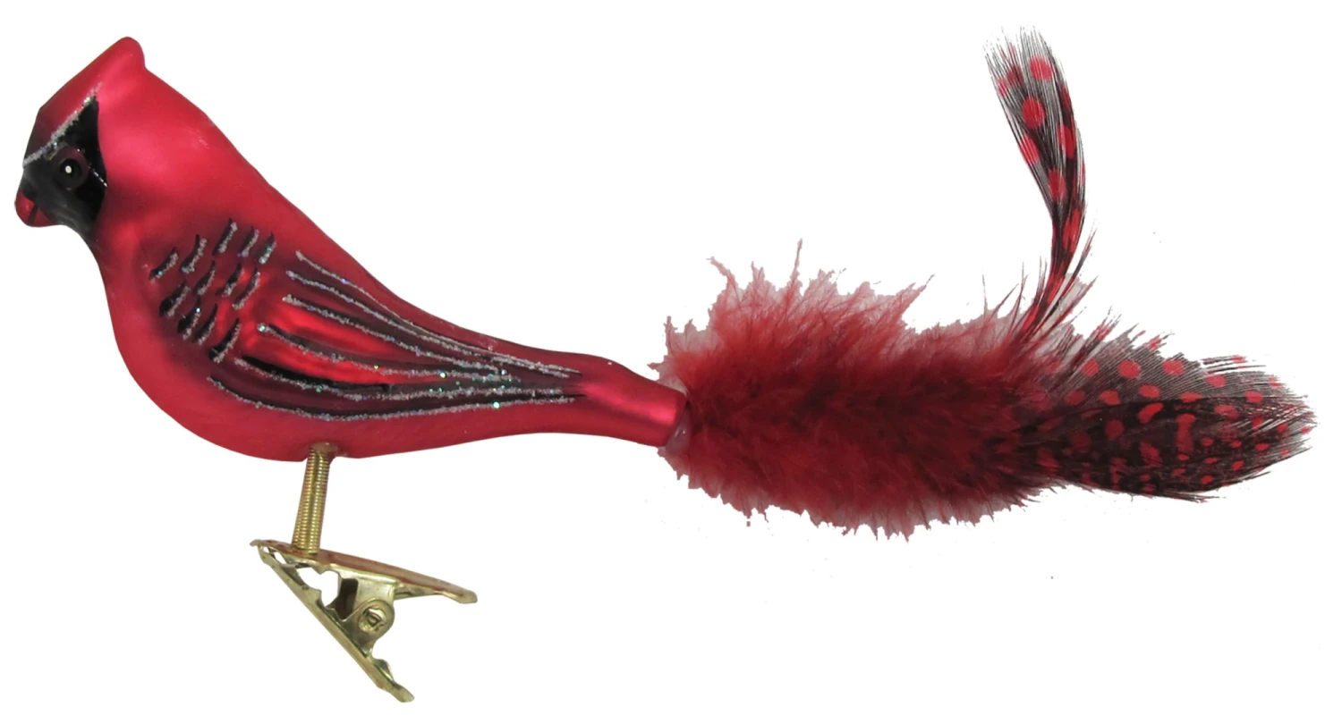 - Lieferumfang: Rot 15cm Glasvogel Kardinal auf Clip mundgeblasen, handekoriert mit 6cm Federschwanz