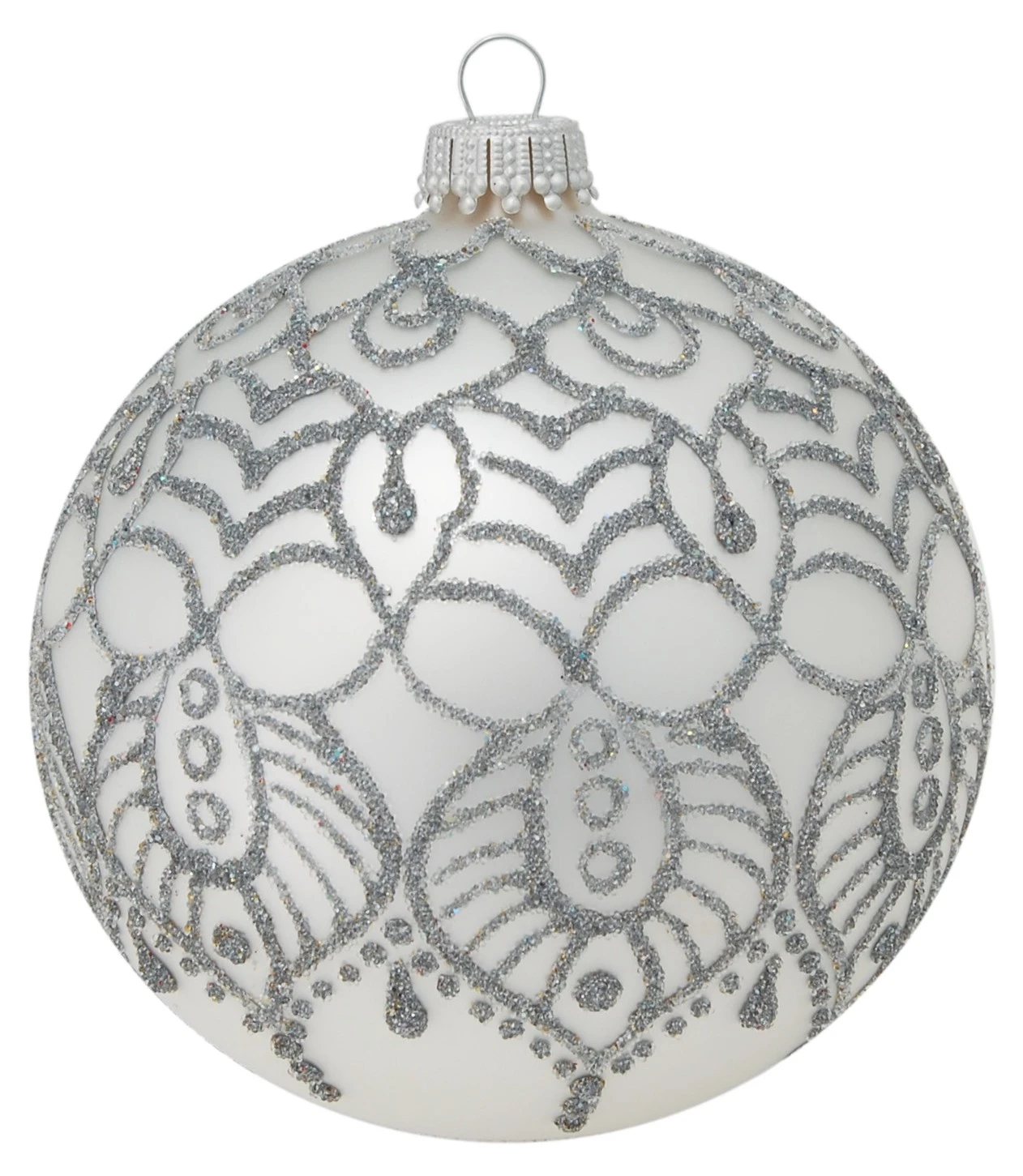 - Lieferumfang: Silber matt 8cm Glaskugel mundgeblasen und handdekoriert