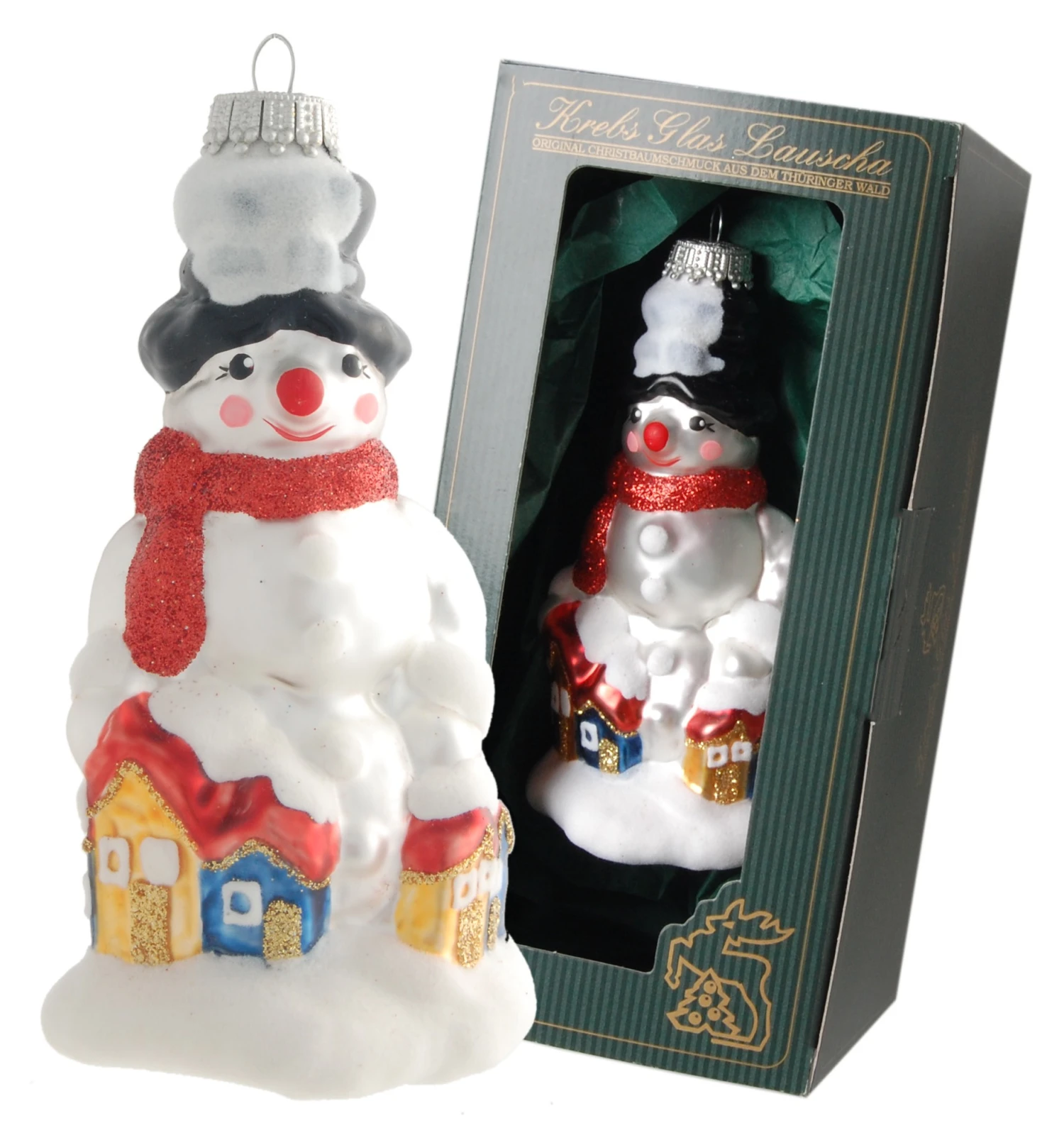 - Lieferumfang: Weiß/Rot 12cm Schneemann mit rotem Schal, Glasornament, mundgeblasen, handbemalt