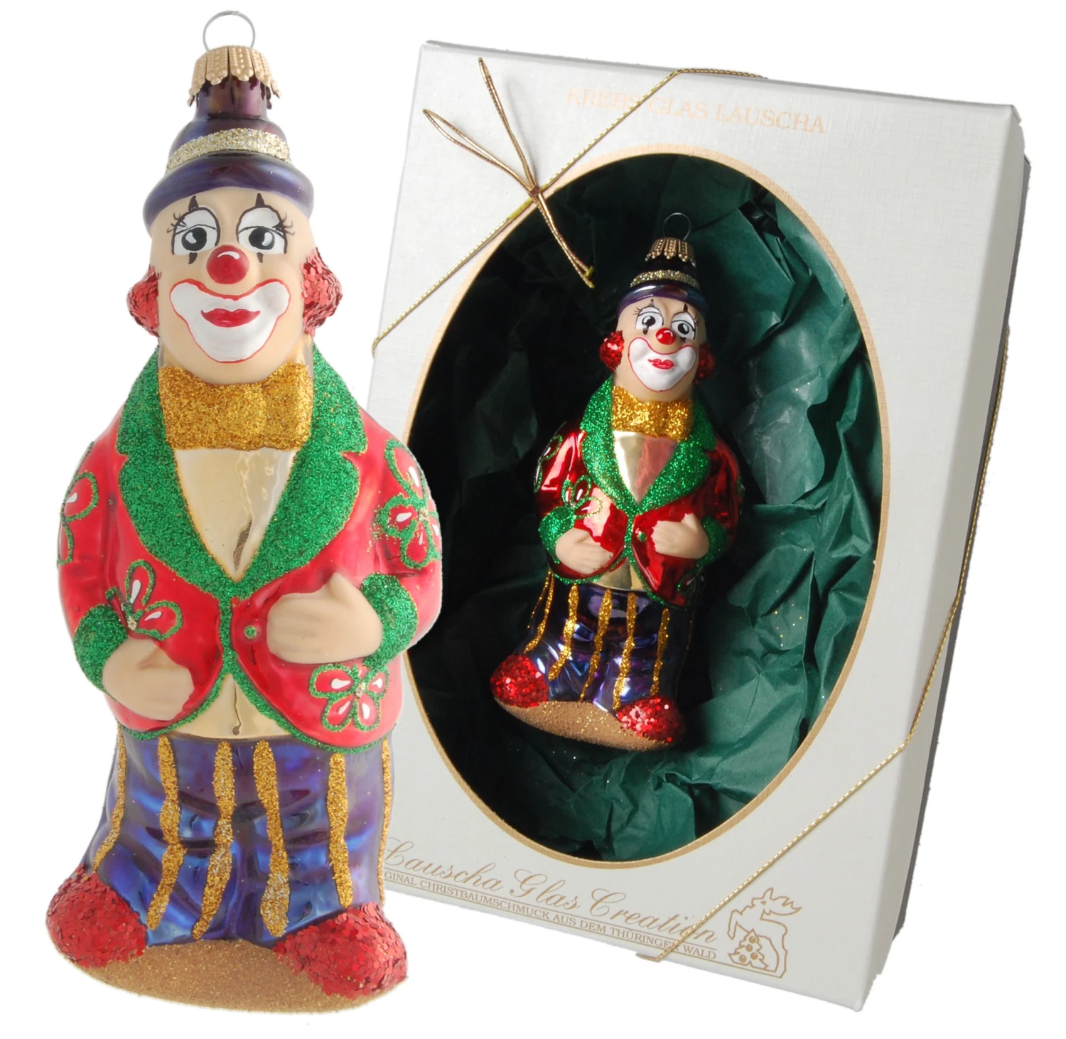 - Lieferumfang: Zirkusclown 14cm, Glasornament, mundgeblasen, handdekoriert (1)