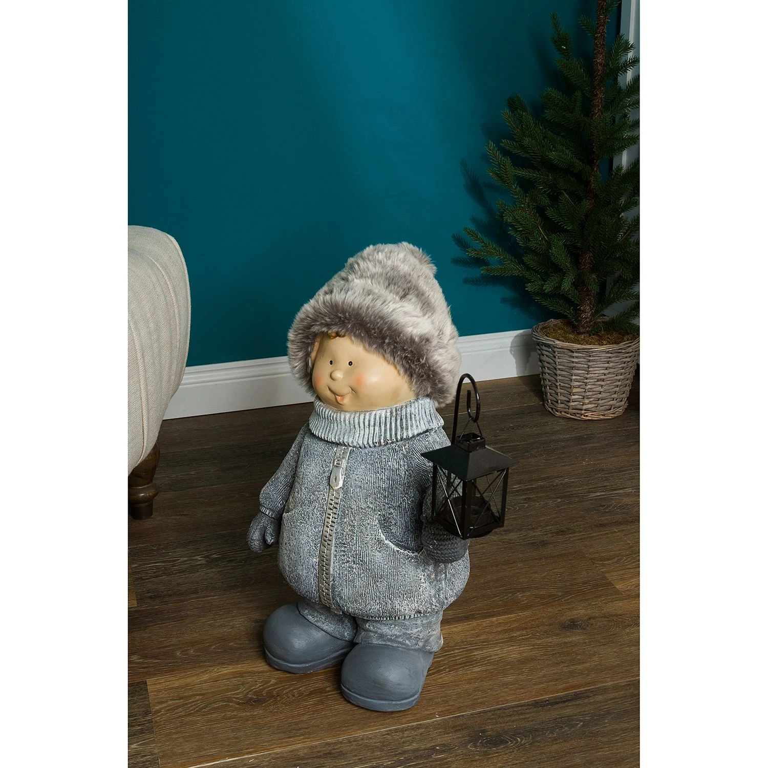 My Flair Dekofigur Winterkind Junge – Kunstharz – Grau