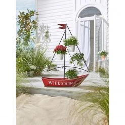 Twentyfour Pflanztopf Segelboot – Metall – Rot / Schwarz
