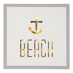 Twentyfour LED-Leuchtschild Beach – Sperrholzplatte – Weiß / Grau