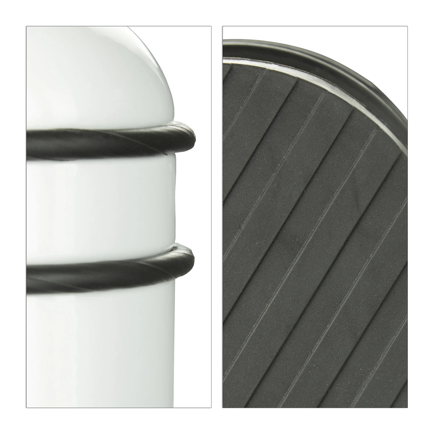 Der Bodenpuffer ist ein nützliches Accessoire für Ihren Haushalt oder im Büro. Er verhindert das unbeabsichtigte An- und Zuschlagen von Türen und Fenstern. Das schwere Eigengewicht sorgt für einen stabilen Stand auf allen Böden. Zudem verhindert die gummierte Unterseite ein Wegrutschen. Der Stopper ist auf allen Fußböden, u. a. auf Laminat und Parkett, einsetzbar. Außerdem beugen drei umlaufende Gummiringe am Zimmertürstopper Beschädigungen an Ihren Türen und Möbeln vor.
