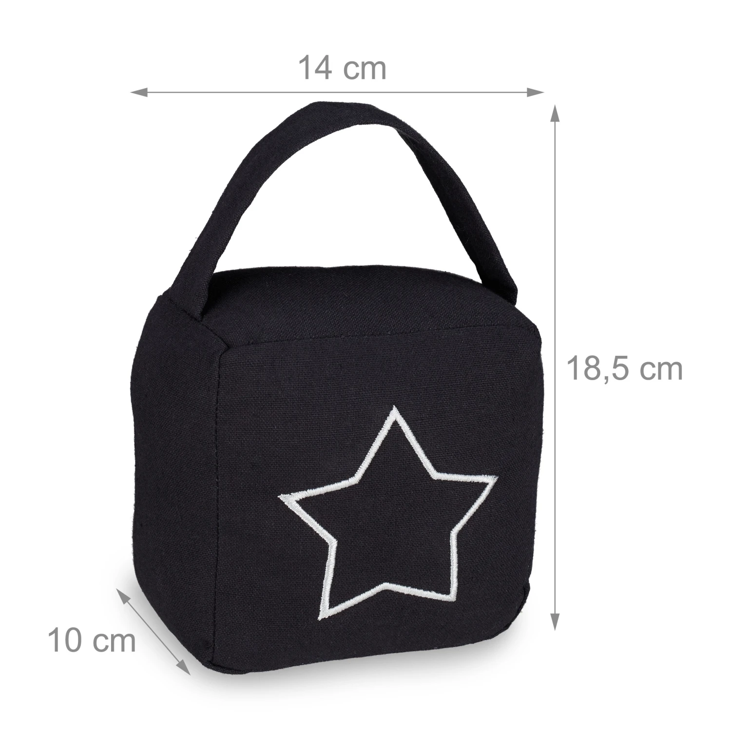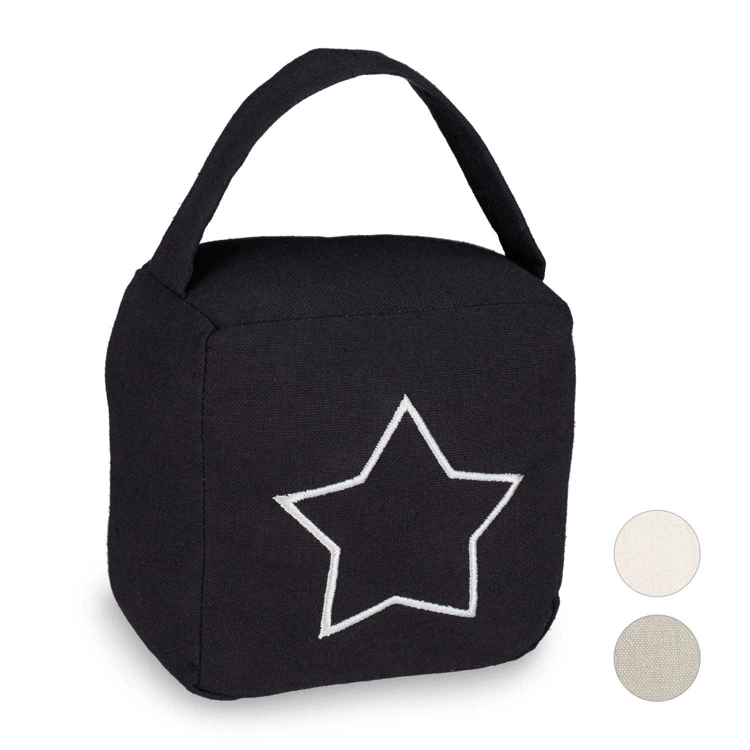 Der quadratische Türstopper aus Stoff überzeugt durch sein modernes Design mit einem dekorativen Stern auf der Vorderseite. Der Türpuffer muss nicht am Boden oder der Wand befestigt werden und kann durch den praktischen Griff einfach angehoben und jederzeit flexibel neu platziert werden.