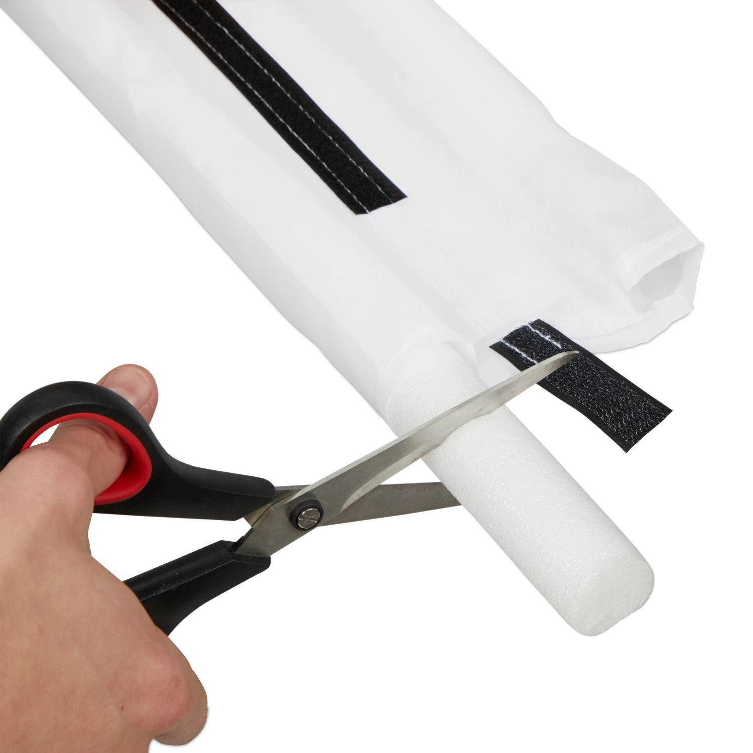 Häufig findet man unter Türen einen Spalt, durch den Zugluft und Kälte ins Haus oder die Wohnung dringen können. Mit den zwei Rollen des Zugstoppers wird dieser Spalt effektiv abgedichtet, wodurch Durchzug verhindert wird und die Kälte draußen bleibt. Der Türwindstopper wird einfach unter der Tür durchgeschoben, sodass auf jeder Seite eine Rolle ist. Eine zusätzliche Befestigung durch Kleben oder Bohren ist nicht nötig. Bei Bedarf kann die Zugluftrolle auf die gewünschte Größe gekürzt werden.
