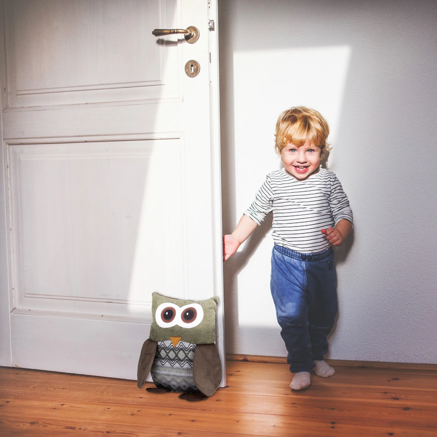 Der Türstopper aus Stoff überzeugt durch sein niedliches Design in Form einer putzigen Eule. Der Türpuffer muss nicht am Boden oder der Wand befestigt werden und kann einfach angehoben und jederzeit flexibel neu platziert werden.