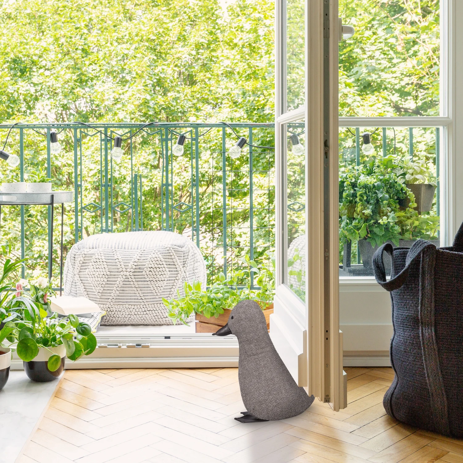 Dieser schöne Bodentürstopper in Form einer niedlichen Gans ist ideal geeignet, um unbeabsichtigtes Anschlagen oder Zuknallen der Türen zu verhindern. Durch die Schwere des mit Sand gefüllten Türhalters steht dieser stabil und sicher auf dem Boden. Dank seiner Höhe ist der Bodenstopper auch für höher gelegene Türen wie die Balkon- oder Terrassentür verwendbar. Der dekorative Türaufhalter aus weichem Stoff ist auch ideal fürs Kinderzimmer und kann jederzeit flexibel neu platziert werden.