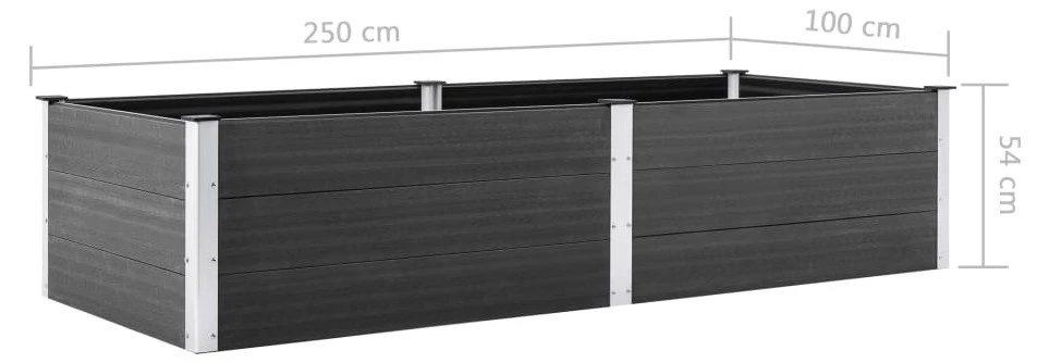 Das Pflanzgefäß besteht aus Holz-Kunststoff-Verbundwerkstoff, wodurch es langlebig, wetterbeständig und für den Außenbereich geeignet ist. Es kann eine beträchtliche Anzahl von grünen Pflanzen und Blumen aufnehmen.