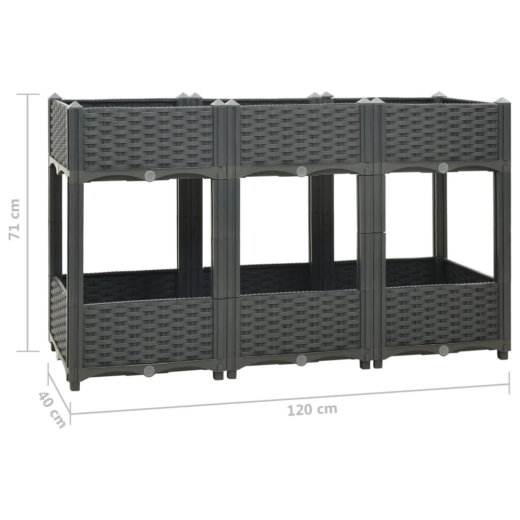 Dieses Pflanzgefäß auf 2 Höhen ist aus Polypropylen gefertigt, wodurch es robust, strapazierfähig und für den täglichen Gebrauch im Freien geeignet ist. Das Hochbeet ist tief und breit genug, um eine große Menge an Erde aufzunehmen und bietet so ausreichend Platz für Ihre Pflanzen, Gemüse, Kräuter und Blumen. Schaffen Sie eine schöne Kulisse für Ihre Pflanzen mit diesem eleganten Pflanzbeet!